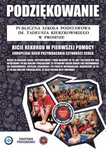Pierwsza pomoc to ważna umiejętność, która może uratować życie drugiego człowieka. Do bicia rekordu przystąpiło 20 uczniów z klas IV-VIII. Razem z dziećmi i młodzieżą z całej Polski, nieprzerwanie prowadzili resuscytację krążeniowo-oddechową.
