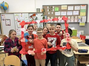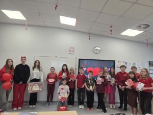 13 lutego w naszej szkole odbyły się radosne obchody walentynek. Tego dnia została rozdana poczta walentynkowa, dzięki której uczniowie mogli przekazać sobie miłe słowa, życzenia i wyrazy sympatii. Uczniowie ubrali się na czerwono, podkreślając wyjątkowy charakter tego dnia i tworząc w szkole prawdziwie walentynkową atmosferę. Nie zabrakło również pamiątkowych zdjęć. Dziękujemy wszystkim za zaangażowanie i wspólne świętowanie