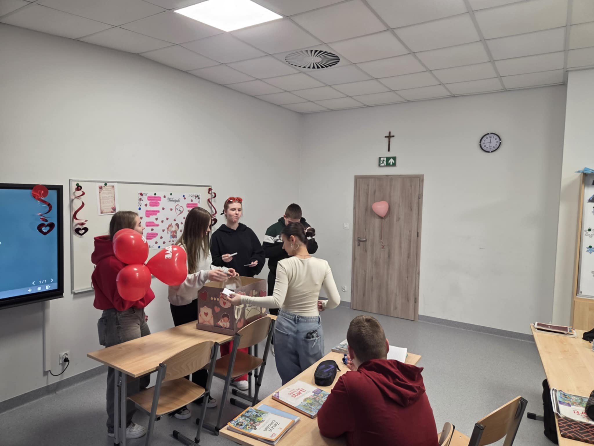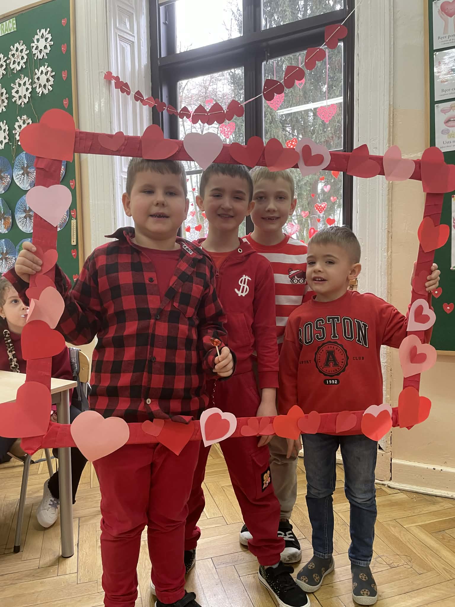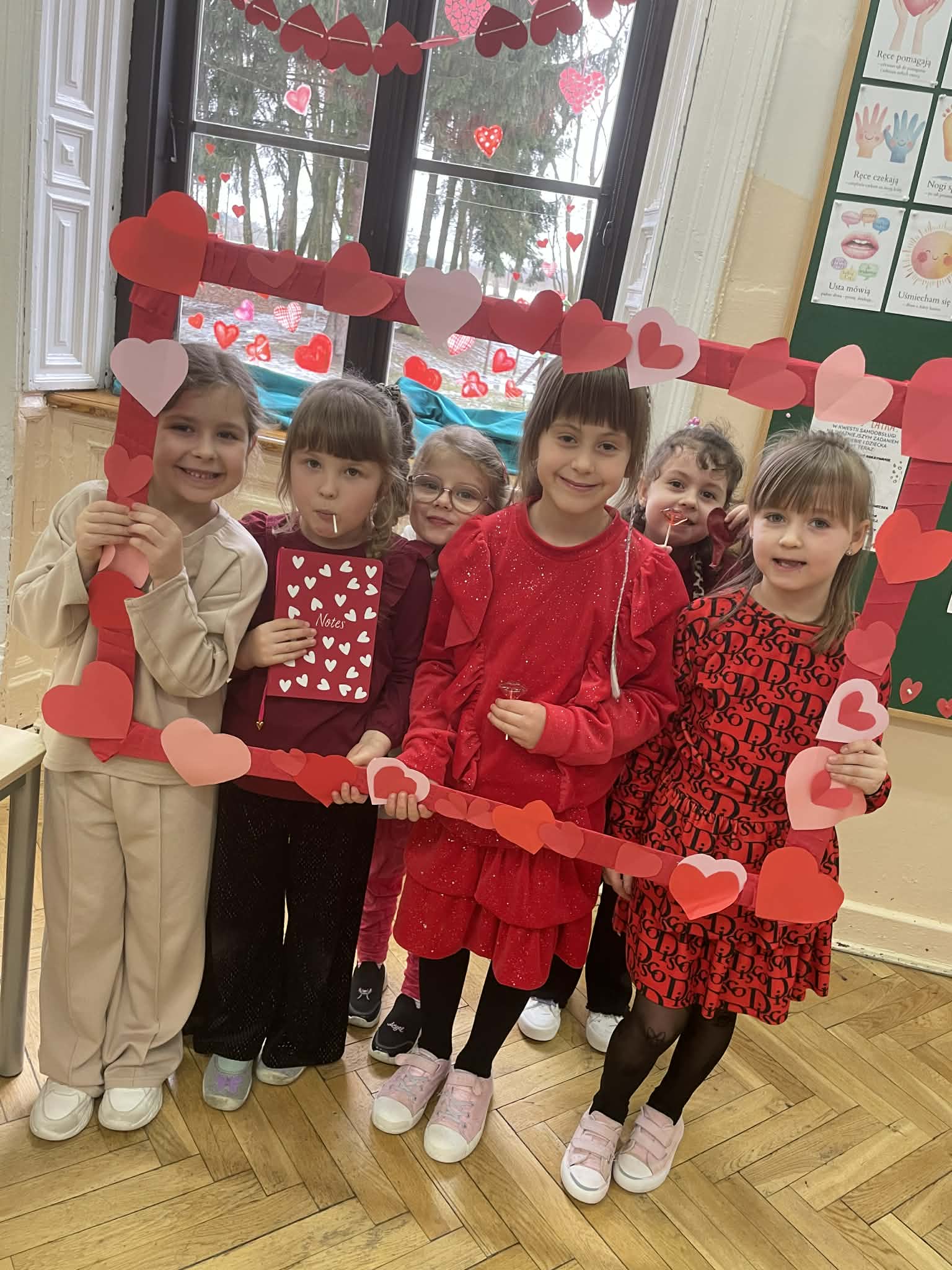 13 lutego w naszej szkole odbyły się radosne obchody walentynek. Tego dnia została rozdana poczta walentynkowa, dzięki której uczniowie mogli przekazać sobie miłe słowa, życzenia i wyrazy sympatii. Uczniowie ubrali się na czerwono, podkreślając wyjątkowy charakter tego dnia i tworząc w szkole prawdziwie walentynkową atmosferę. Nie zabrakło również pamiątkowych zdjęć. Dziękujemy wszystkim za zaangażowanie i wspólne świętowanie