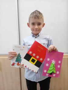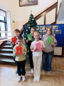 Z radością dzielimy się efektem pracy naszych uczniów, którzy w ostatnich dniach z zaangażowaniem tworzyli bożonarodzeniowe kartki świąteczne. Każda z nich została wykonana z ogromną starannością, kreatywnością oraz ciepłymi życzeniami, które trafią do podopiecznych Gminnego Ośrodka Pomocy Społecznej w Promnie i Fundacji Klementyna.