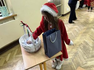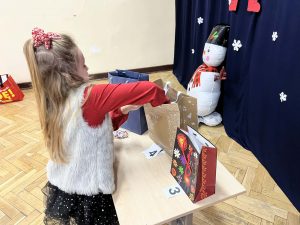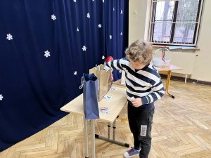 Jedną z głównych atrakcji była specjalnie przygotowana loteria mikołajkowa. Każde dziecko mogło wziąć udział, odpowiadając na proste pytania. Uczniowie z wielkim entuzjazmem podchodzili do stanowiska, aby sprawdzić swoją wiedzę i spróbować szczęścia.