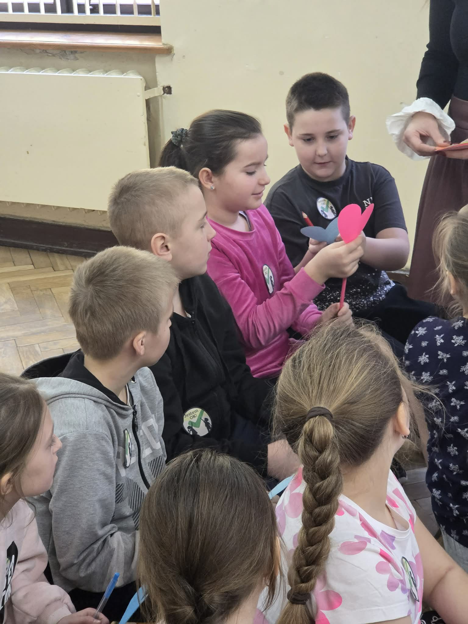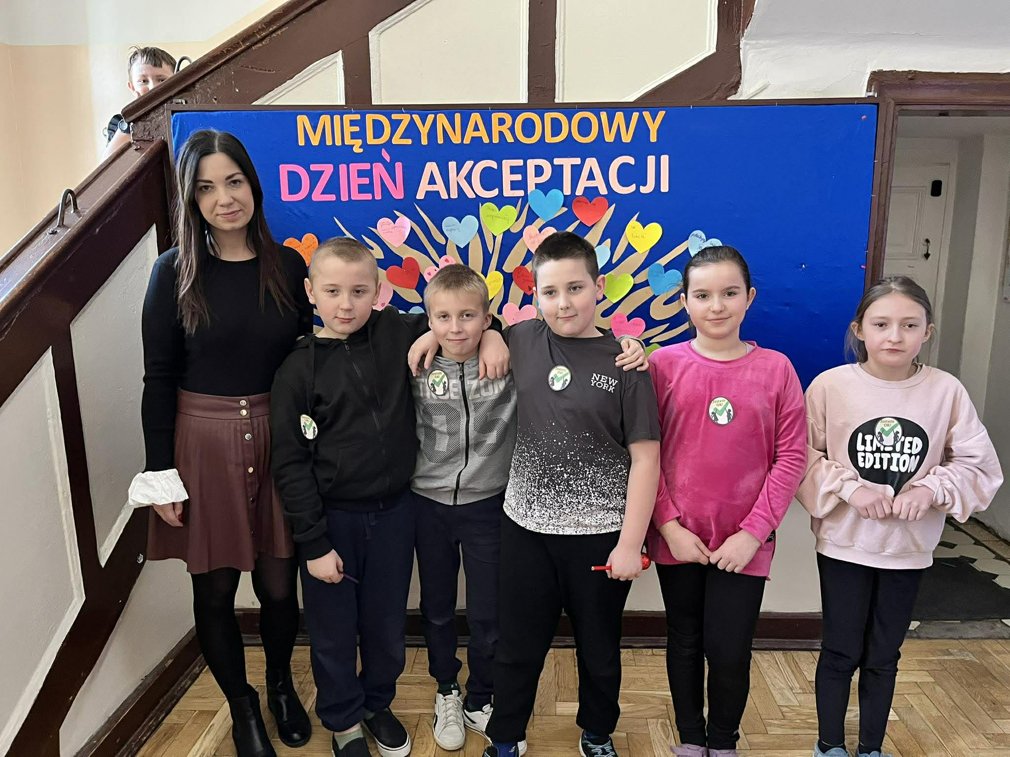Nasza szkoła wzięła udział w projekcie „Jestem OK”, którego celem było kształtowanie postaw akceptacji i wzajemnego szacunku. Podczas zajęć dzieci uczyły się, czym jest akceptacja oraz dlaczego jest tak ważna w codziennym życiu i relacjach z innymi. Pedagog szkolny przeprowadził krótką lekcję na ten temat, zachęcając uczniów do rozmowy i dzielenia się swoimi przemyśleniami. Na zakończenie zajęć wspólnie wykonaliśmy „drzewko akceptacji. Dzieci przygotowały serduszka z pozytywnymi hasłami, takimi jak: „lubię cię”, „szanuję”, „akceptuję”. Była to wartościowa inicjatywa, która pokazała, jak ważne są życzliwość i empatia w naszej szkolnej społeczności.