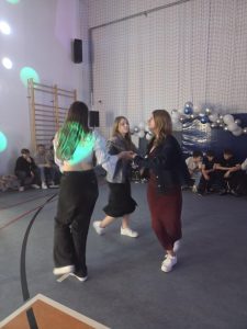 Radość sprawiła także wizyta Ciastka, który zachęcał do wspólnej zabawy i wywoływał uśmiechy na twarzach uczestników. Dodatkową atrakcją było plecenie kolorowych warkoczyków, z którego chętnie korzystały uczestniczki balu.