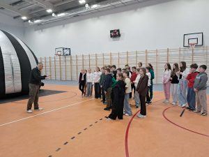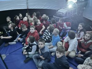 Najstarsi – uczniowie klas IV–VIII – mogli zobaczyć film o początkach życia na Ziemi, ukazujący niezwykłą historię naszej planety i ewolucji organizmów. Pokazy w planetarium były dla wszystkich uczniów nie tylko świetną zabawą, lecz także wartościową lekcją przyrody i astronomii. To była wyjątkowa okazja, by w atrakcyjny sposób pogłębić swoją wiedzę o świecie i kosmosie.