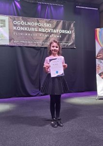 Zmagania z trudną sztuką recytacji podjęli: Agata Łukasiak (klasa I), Wojciech Ostrowski (klasa I), Julia Kabot (klasa II), Jan Fedorowicz (klasa III), Aleksander Tula (klasa III), Jan Kostrzewa (klasa III), Kaja Łukasiewicz (klasa IV), Natalia Fedorowicz (klasa IV), Nikola Miniewska (klasa VI) i Andżelika Wrzosek (klasa VIII).
