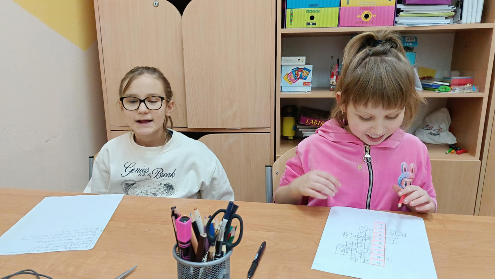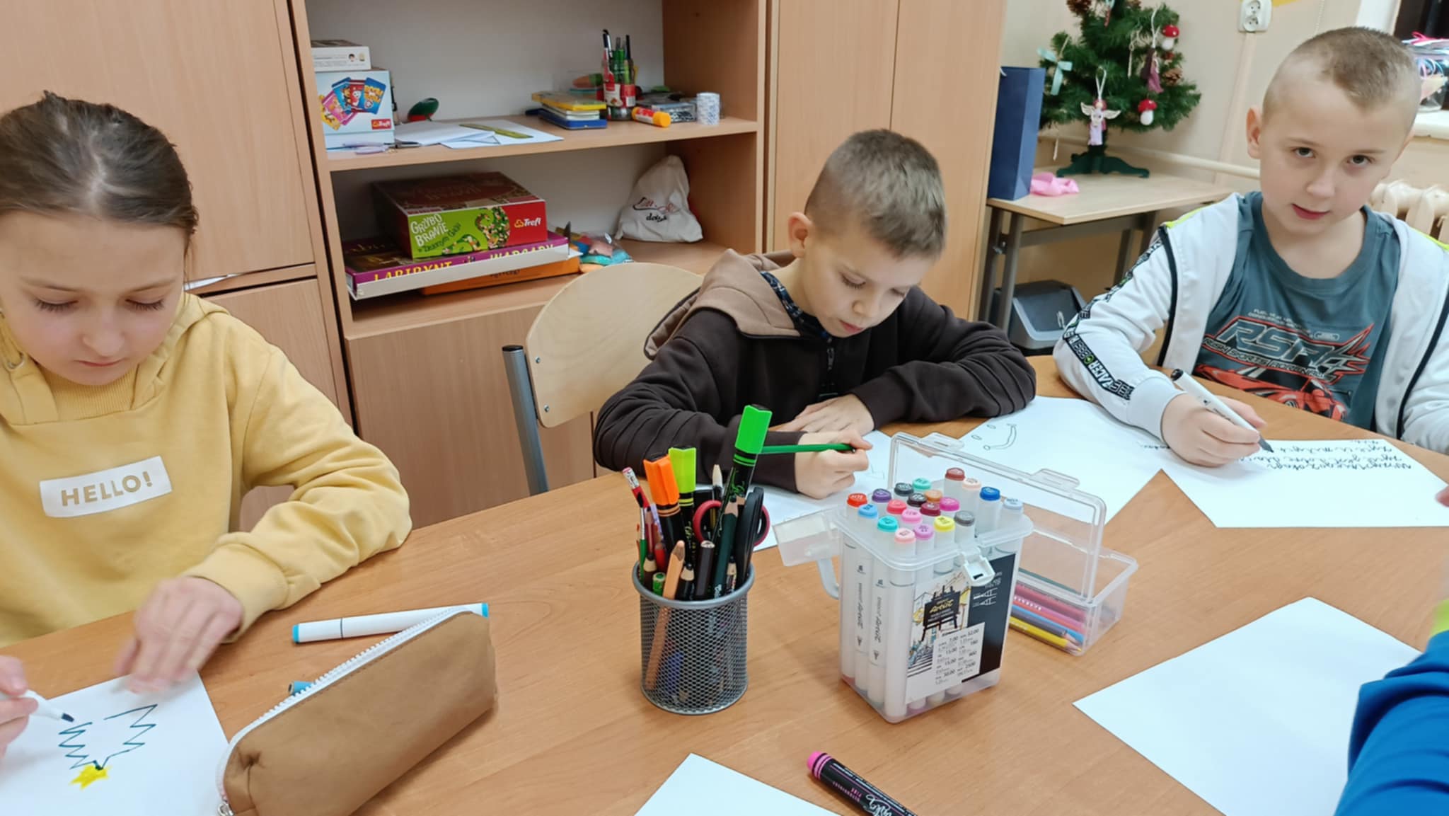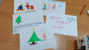 Szczególnie ważne było dla nas dzielenie się dobrocią. Uczniowie z ogromnym zaangażowaniem wykonali kartki świąteczne dla Seniorów – podopiecznych Gminnego Ośrodka Pomocy Społecznej w Promnie i Fundacji Klementyna, wkładając w nie serce, ciepłe słowa i uśmiech. Młodsi uczniowie stworzyli również album dobrych życzeń, a także układali krzyżówki do haseł związanych z wartością słów. Podczas pracy nad nim padły słowa, które zostaną z nami na długo – dzieci zgodnie stwierdziły, że to niby nic wielkiego, by obdarzyć kogoś dobrym słowem, ale może to być wszystko, co drugi człowiek otrzyma ❤️