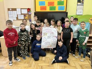 Uczniowie klasy II i III wzięli udział w kolejnej wartościowej lekcji w ramach Międzynarodowego Projektu Edukacyjnego „Jestem OK!”. Dzieci zapoznały się z książką „Nie mów tak do mnie”, która stała się punktem wyjścia do rozmów, dzielenia się opiniami i refleksjami. Celem zajęć była nauka rozpoznawania sytuacji naruszających granice, kształtowanie asertywnych postaw oraz rozwijanie empatii i szacunku wobec emocji innych.