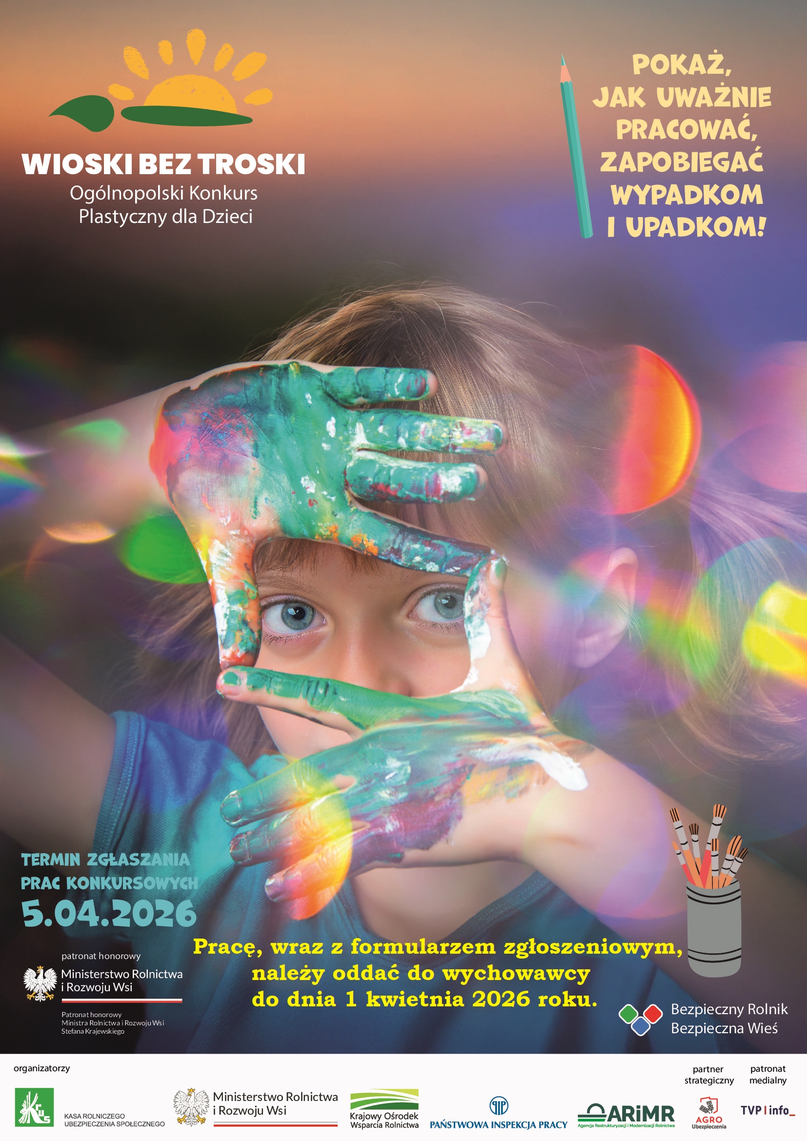Placówka Terenowa Kasy Rolniczego Ubezpieczenia Społecznego zaprasza dzieci do udziału w 16. edycji Ogólnopolskiego Konkursu Plastycznego pod hasłem: „Wioski bez troski”