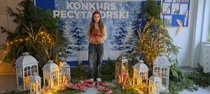 W dniach 4-5 grudnia uczniowie z naszej szkoły wzięli udział w Konkursie Poezji Świątecznej, który był etapem szkolnych eliminacji do XIX Konkursu Recytatorskiego „Idą Święta”. Celem konkursu było propagowanie pięknej poezji, kształtowanie kultury żywego słowa, rozwijanie wrażliwości i poczucia estetyki, kultywowanie świątecznych tradycji, a także rozwój zdolności recytatorskich.