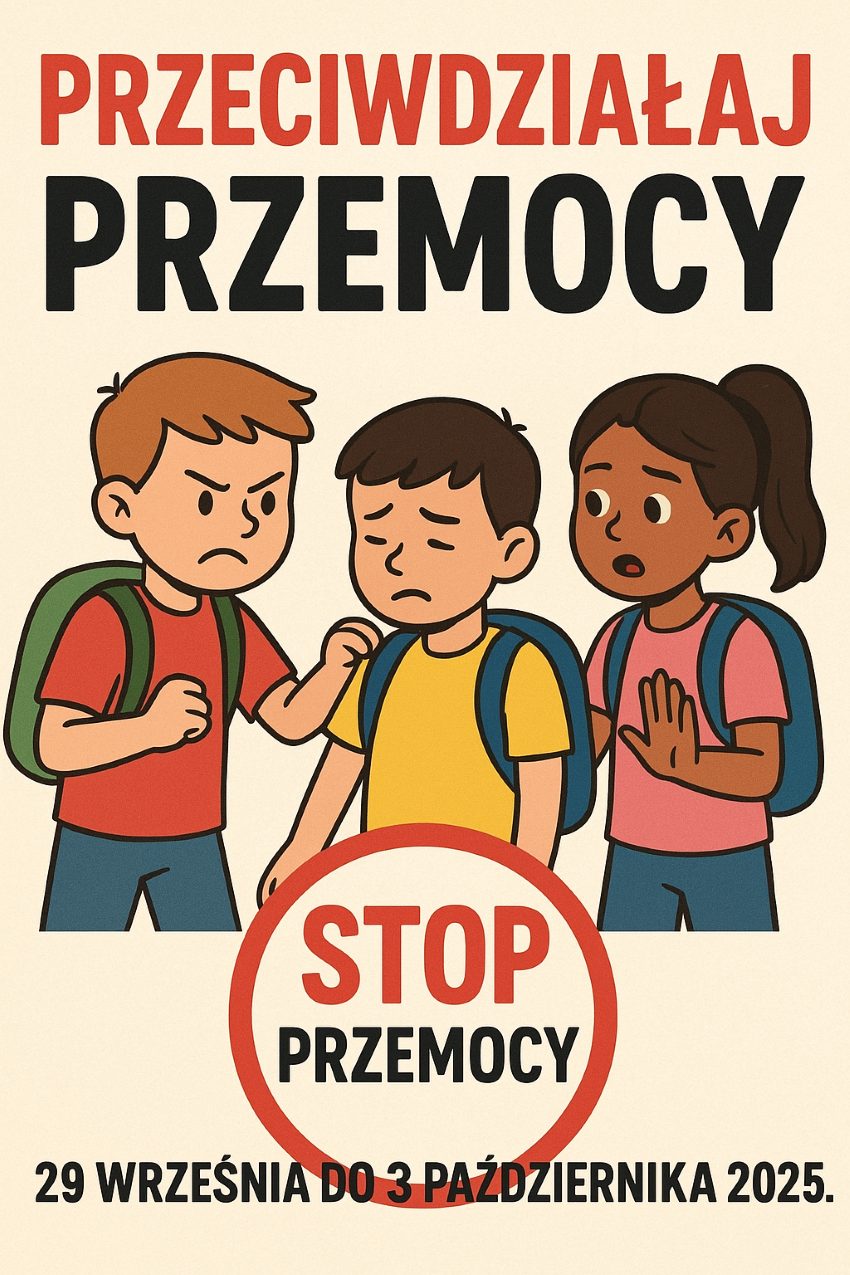 Z okazji Ogólnopolskiego Tygodnia Przeciwdziałania Przemocy Rówieśniczej, który odbędzie się 29 września – 3 października 2025 r., w naszej szkole przeprowadzamy zajęcia z uczniami skupione na potrzebach i zagrożeniach w relacjach koleżeńskich. Będzie to tydzień poświęcony rozmowom o bezpieczeństwie, empatii i budowaniu relacji – tak, aby każde dziecko i nastolatek czuł się w swojej społeczności szkolnej bezpiecznie i ważnie.
