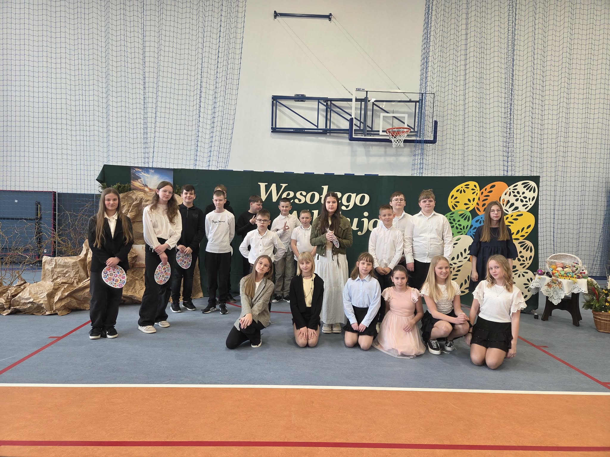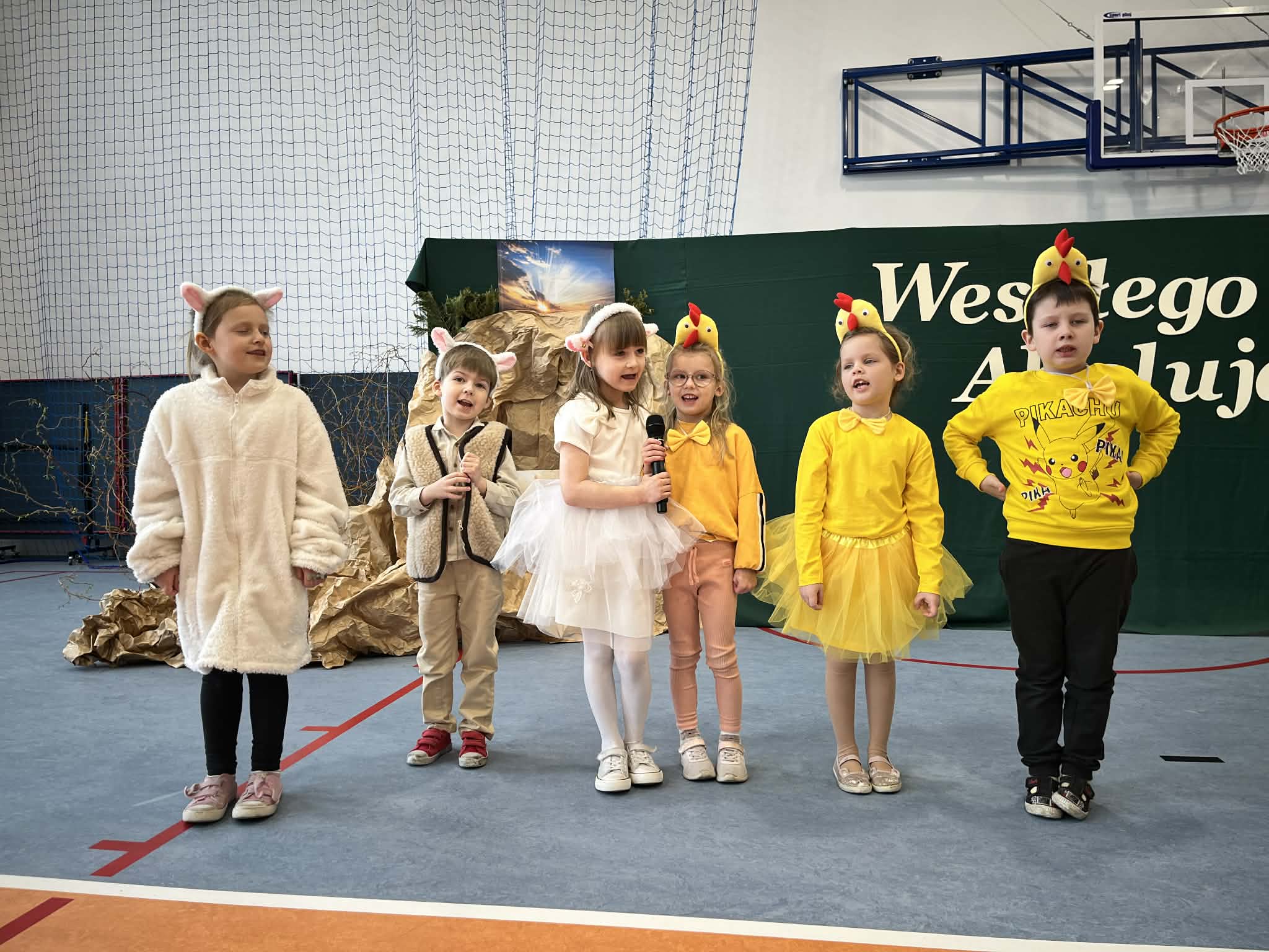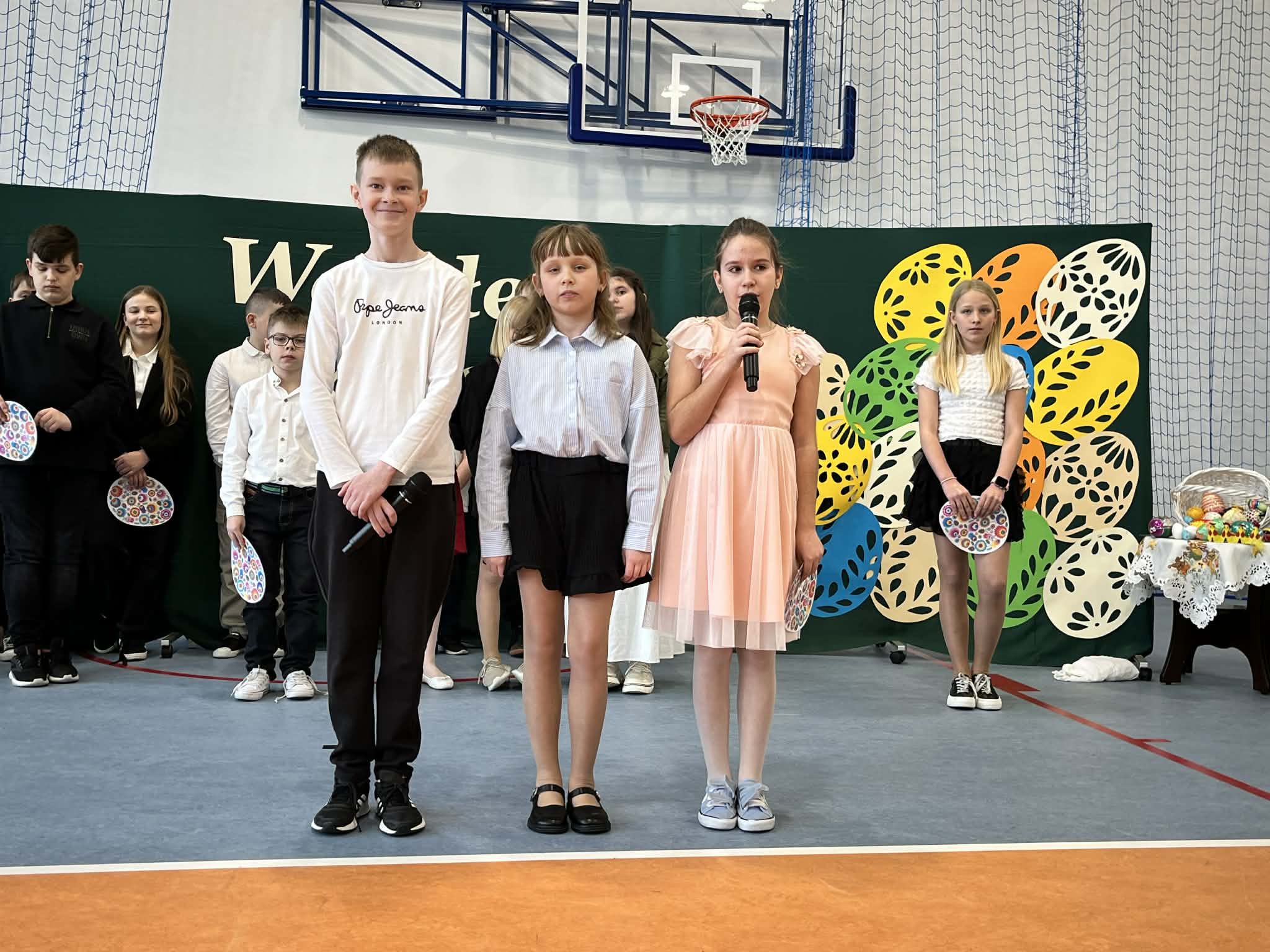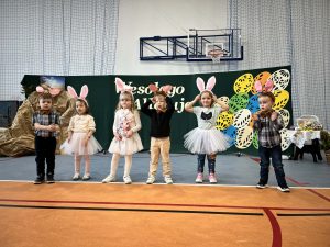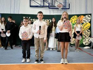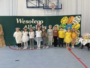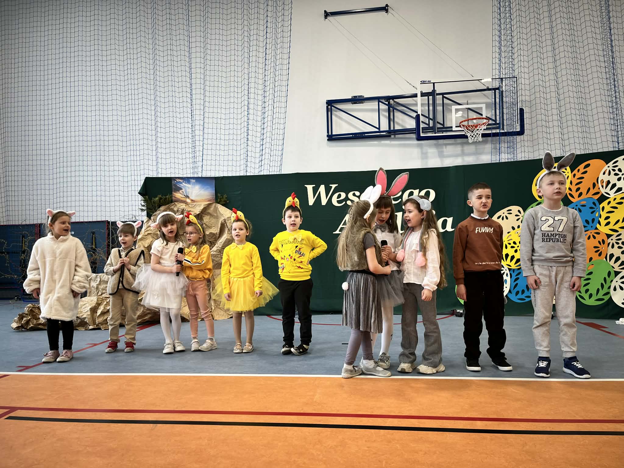 Uczniowie wykazali się dużym zaangażowaniem oraz kreatywnością, przygotowując zarówno część artystyczną, jak i dekoracje. Całość została uświetniona świątecznymi piosenkami oraz wierszami, które podkreśliły wyjątkowy charakter wydarzenia. Dodatkową atrakcją był występ przedszkolaków, którzy zaprezentowali radosne piosenki wielkanocne, wzbudzając uśmiech i zachwyt wśród publiczności.