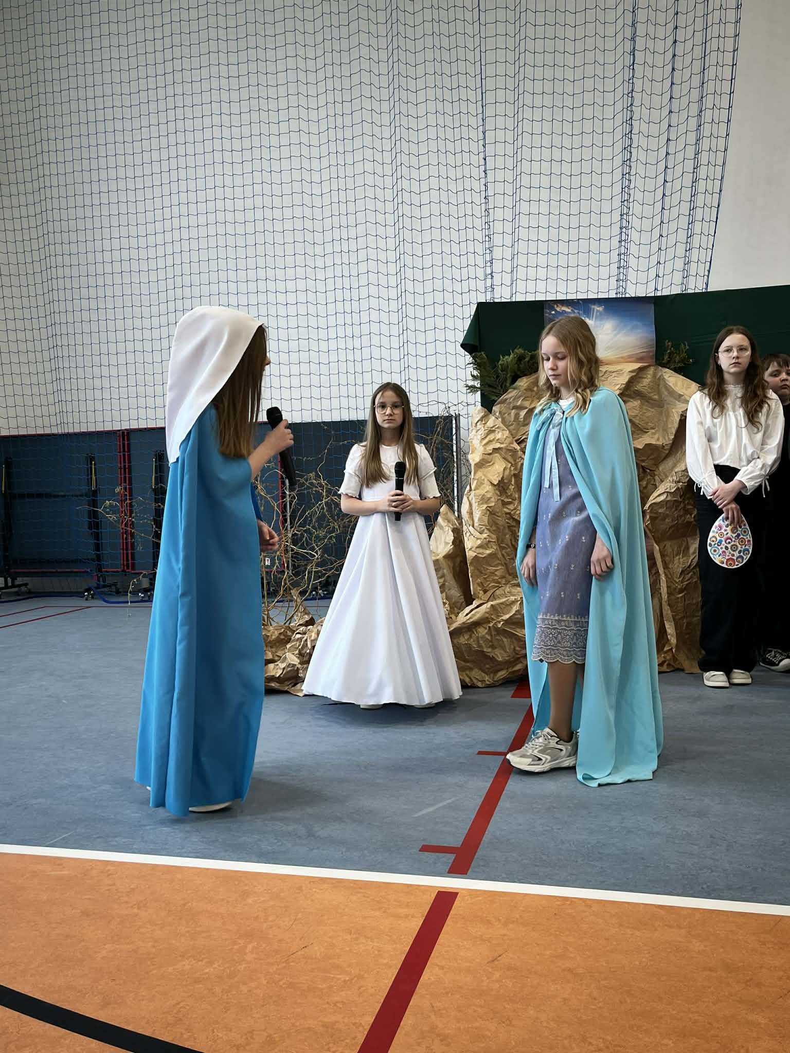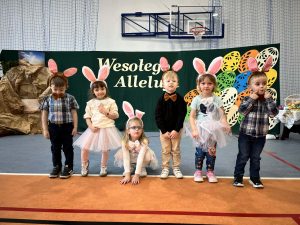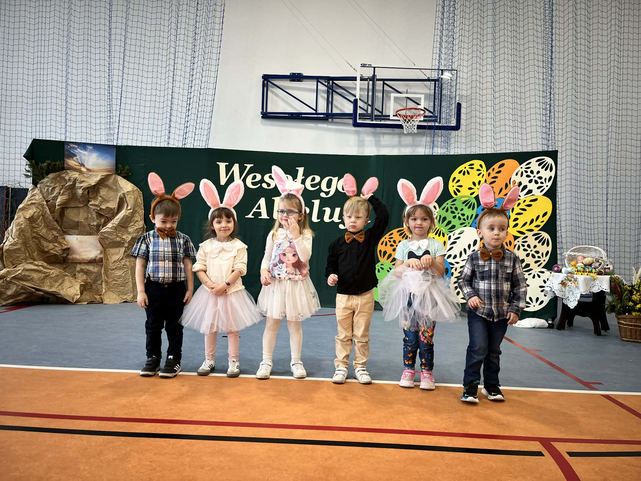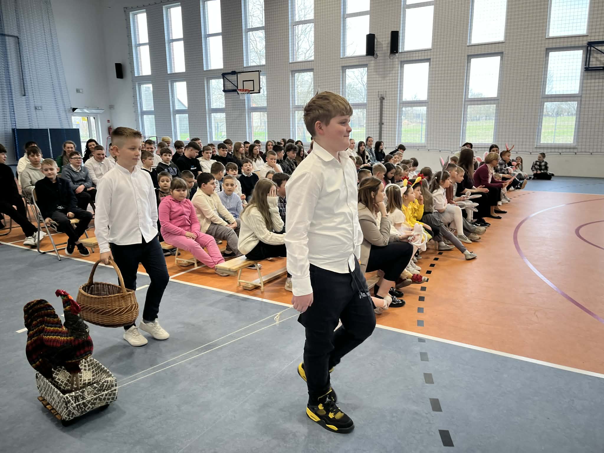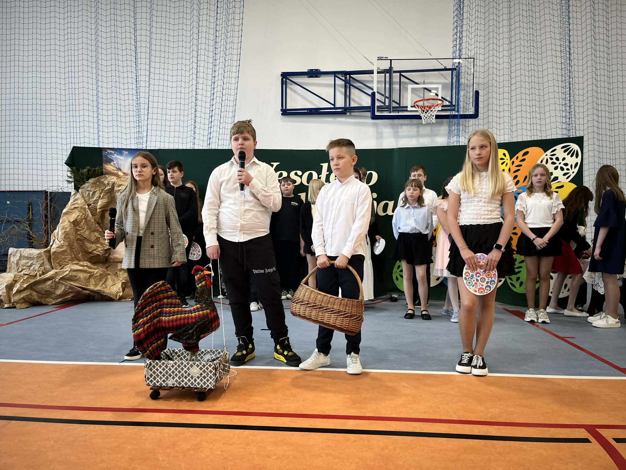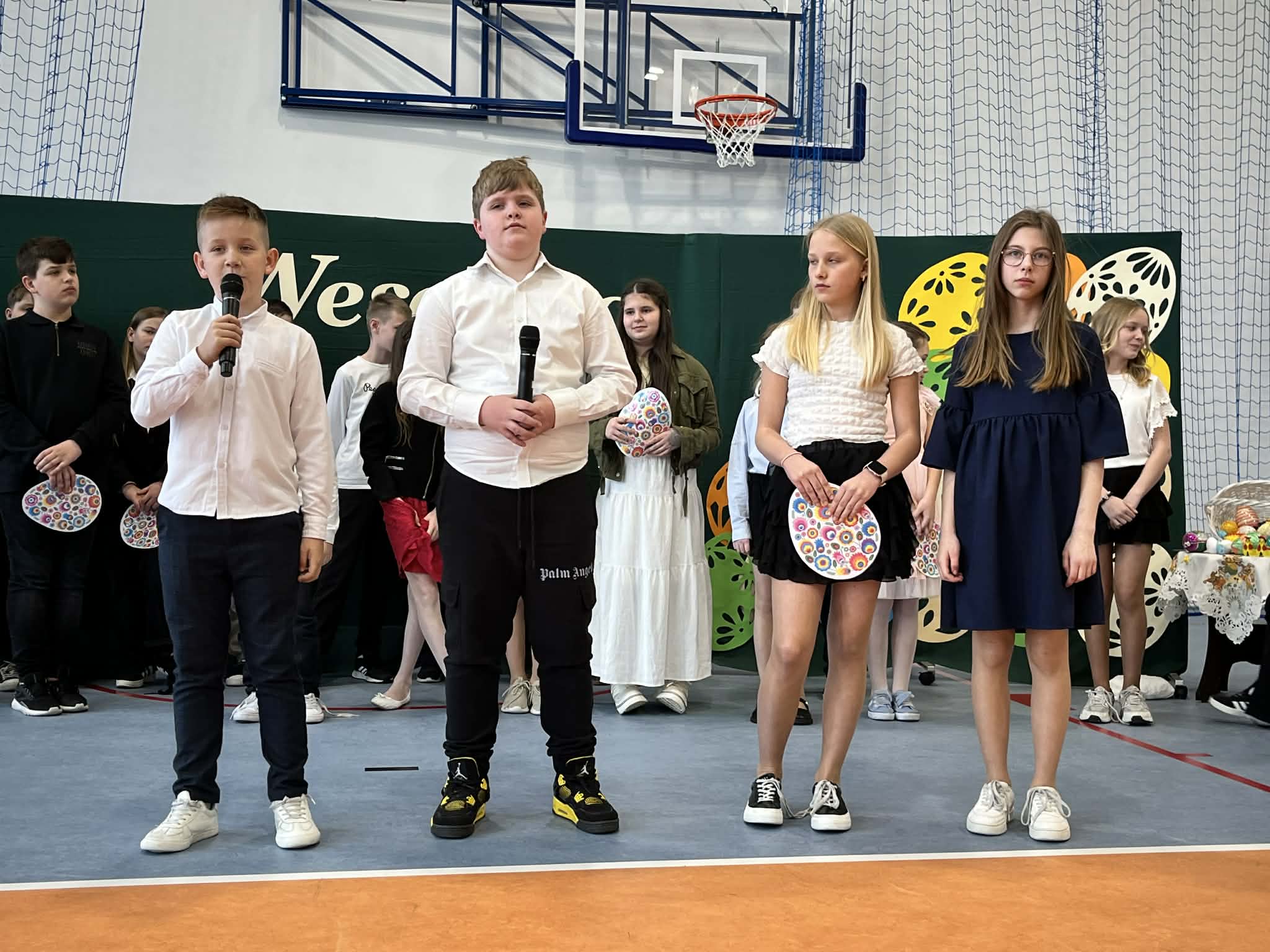 Uczniowie wykazali się dużym zaangażowaniem oraz kreatywnością, przygotowując zarówno część artystyczną, jak i dekoracje. Całość została uświetniona świątecznymi piosenkami oraz wierszami, które podkreśliły wyjątkowy charakter wydarzenia. Dodatkową atrakcją był występ przedszkolaków, którzy zaprezentowali radosne piosenki wielkanocne, wzbudzając uśmiech i zachwyt wśród publiczności.