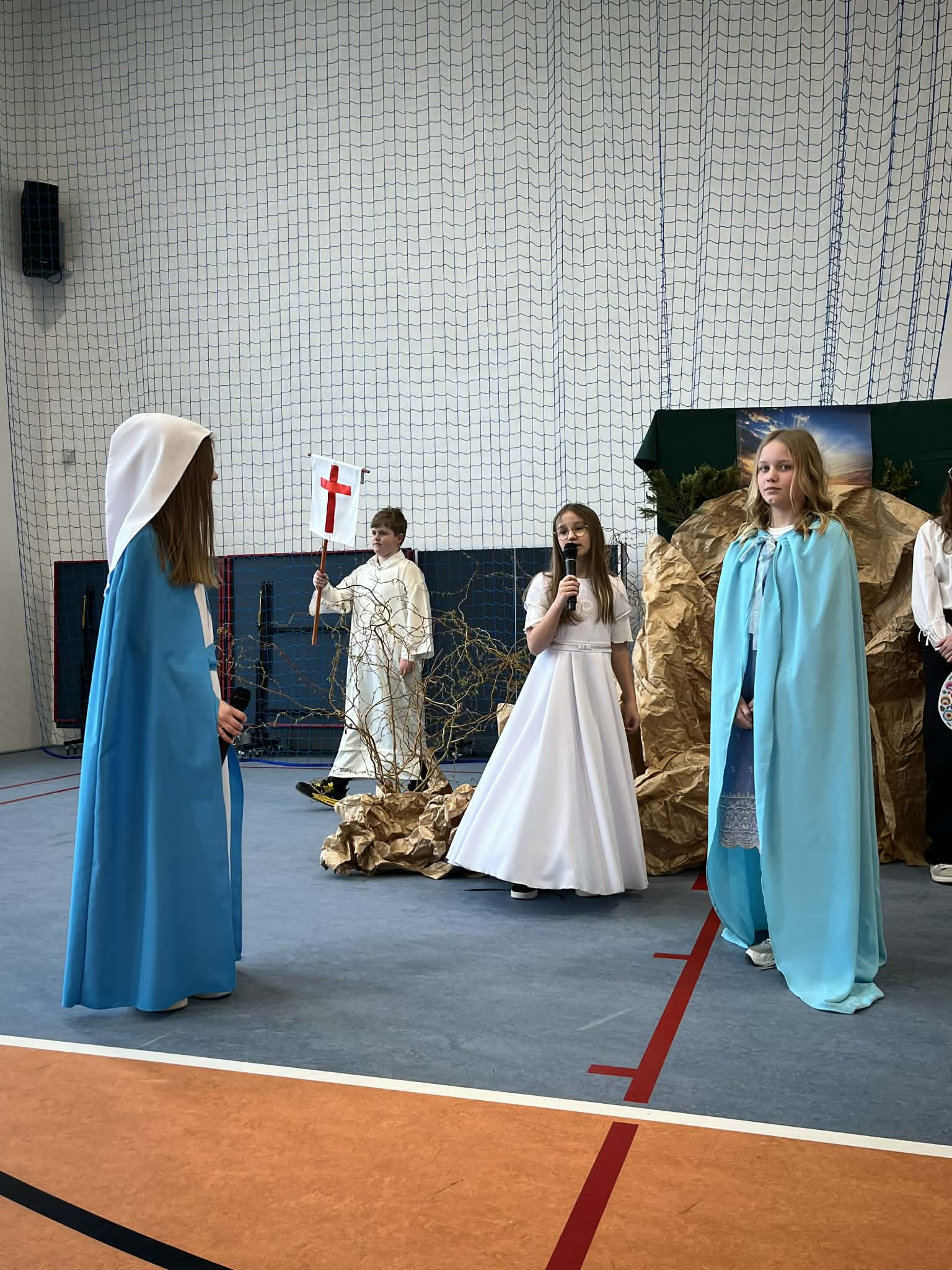 1 kwietnia w naszej szkole odbył się uroczysty apel z okazji Świąt Wielkanocnych, który wprowadził całą społeczność w wyjątkowy, świąteczny nastrój. Uczniowie przygotowali przedstawienie, podczas którego zaprezentowali najważniejsze tradycje i zwyczaje związane z Wielkanocą.