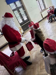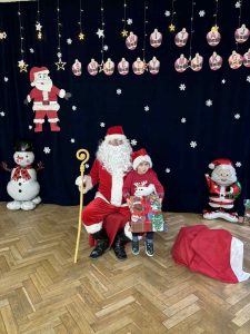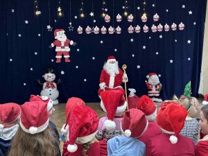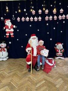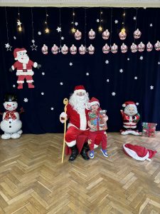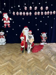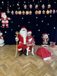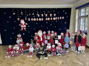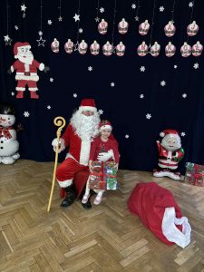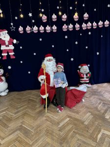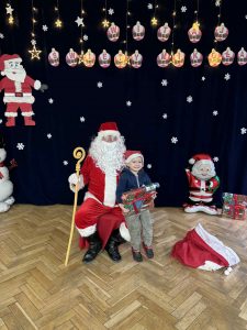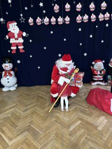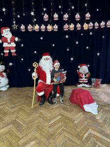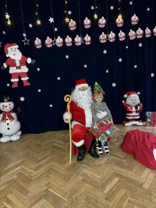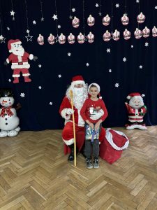 5 grudnia dzieci z oddziałów przedszkolnych już od rana wypatrywały przez okno długo wyczekiwanego gościa i pomimo braku białego puchu, jak co roku przybył do nas na czas. Dzieci z ogromną radością przywitały Mikołaja śpiewając mu piosenki. Na twarzach dzieci widoczna była ekscytacja. Święty Mikołaj wszystkim przedszkolakom wręczył piękne prezenty, a w zamian każde dziecko złożyło obietnicę, iż kolejny rok będzie grzeczne i radosne.